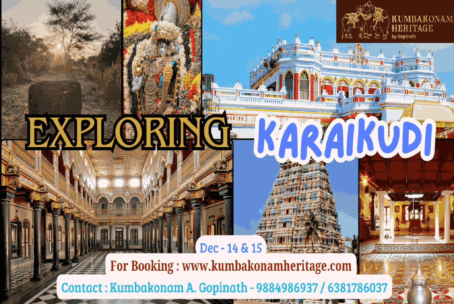 The purpose of this two-day (14.12.2024 & 15.12.2024) journey is to see Karaikudi’s and the surrounding area’s traditional places.