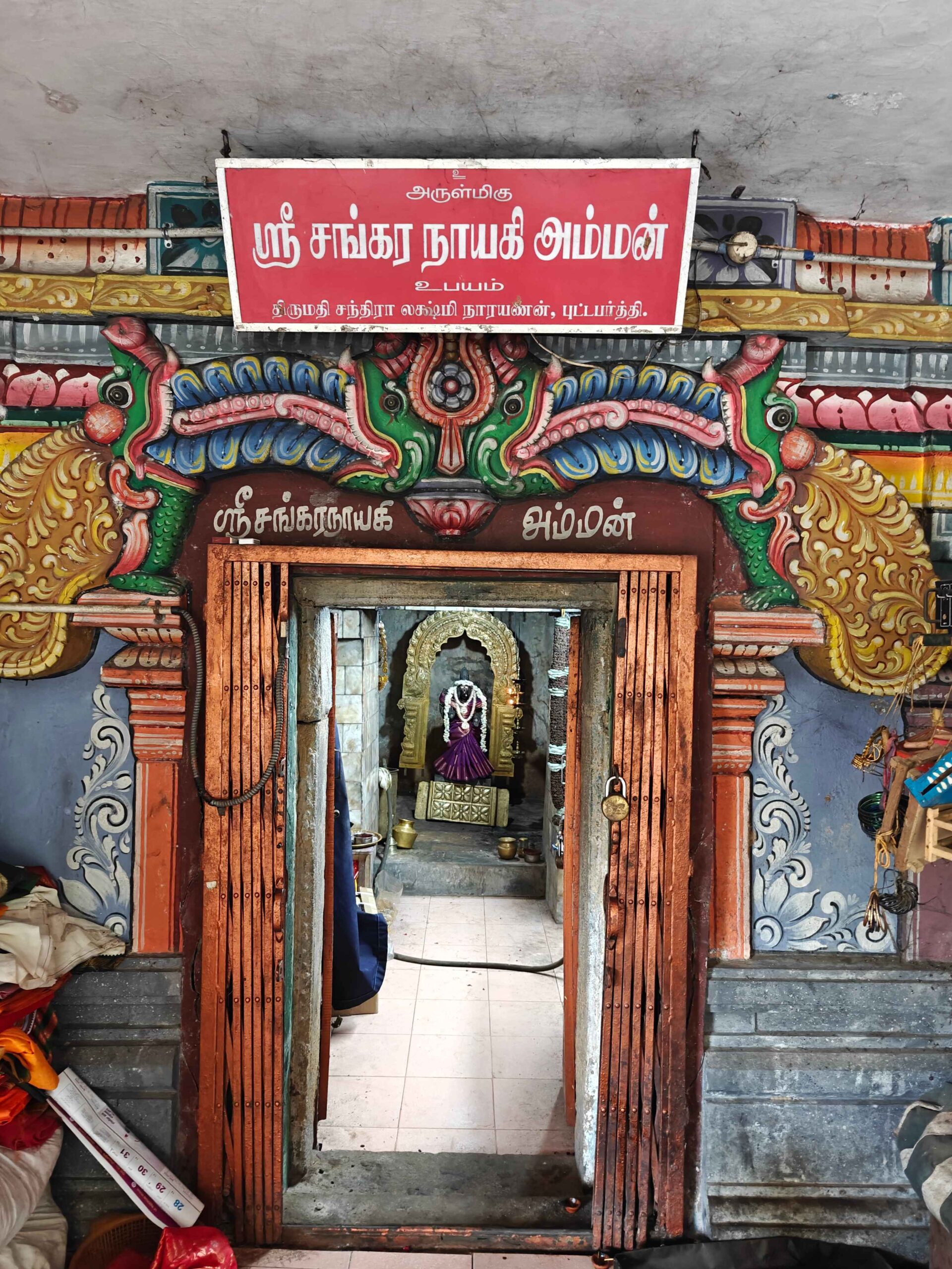 Ambal Sri Sankara Nayaki is in a separate Sannidhi facing South. Ambal is standing posture with abhaya varada hastam.