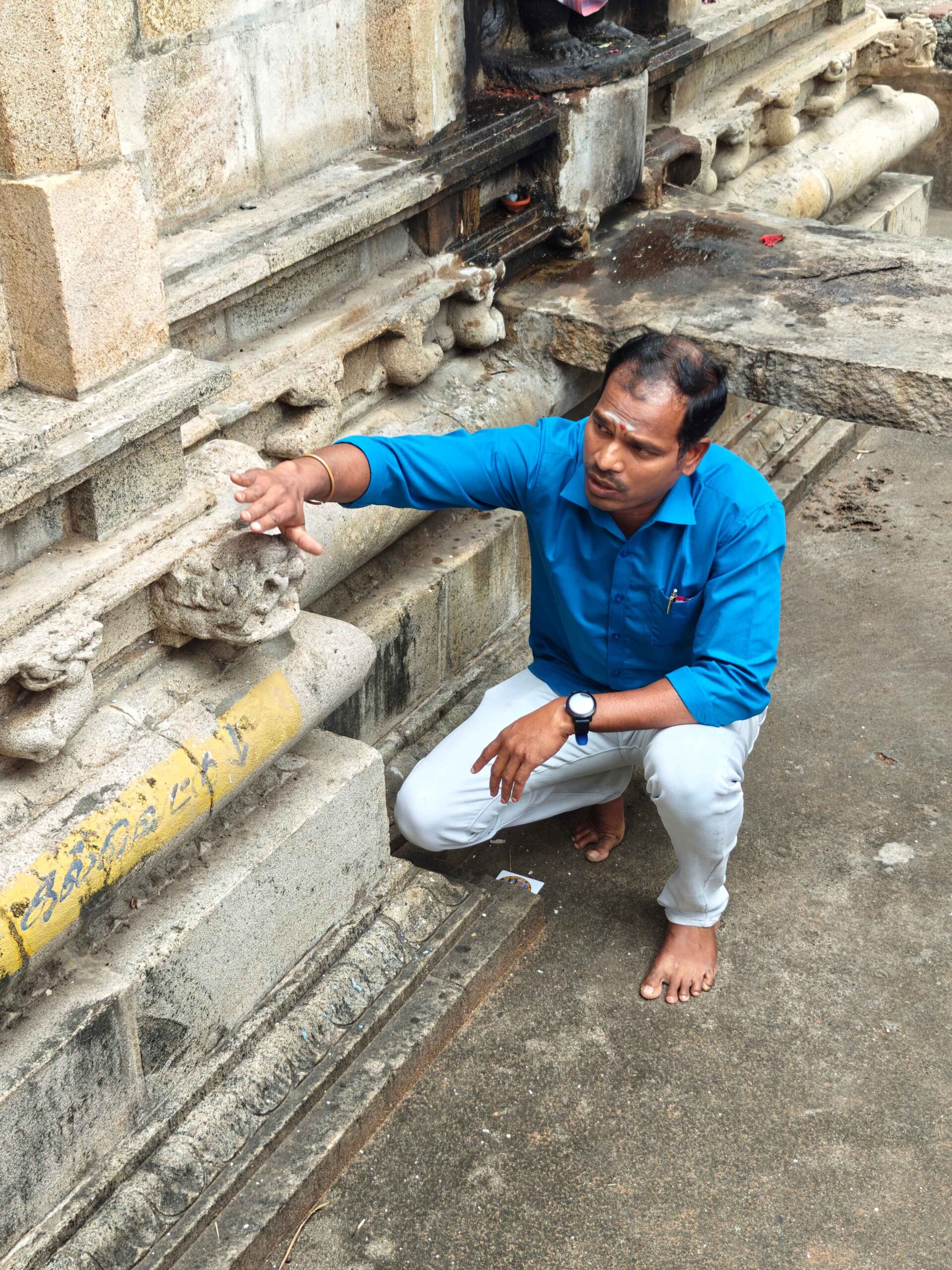 A fragment of a 12th-century inscription stone was found during our Visit to this temple. Some of the words found are, Iru Nazhi, amuthu. This inscription may record the endowment of Naivedyam offered to Shiva of this temple.