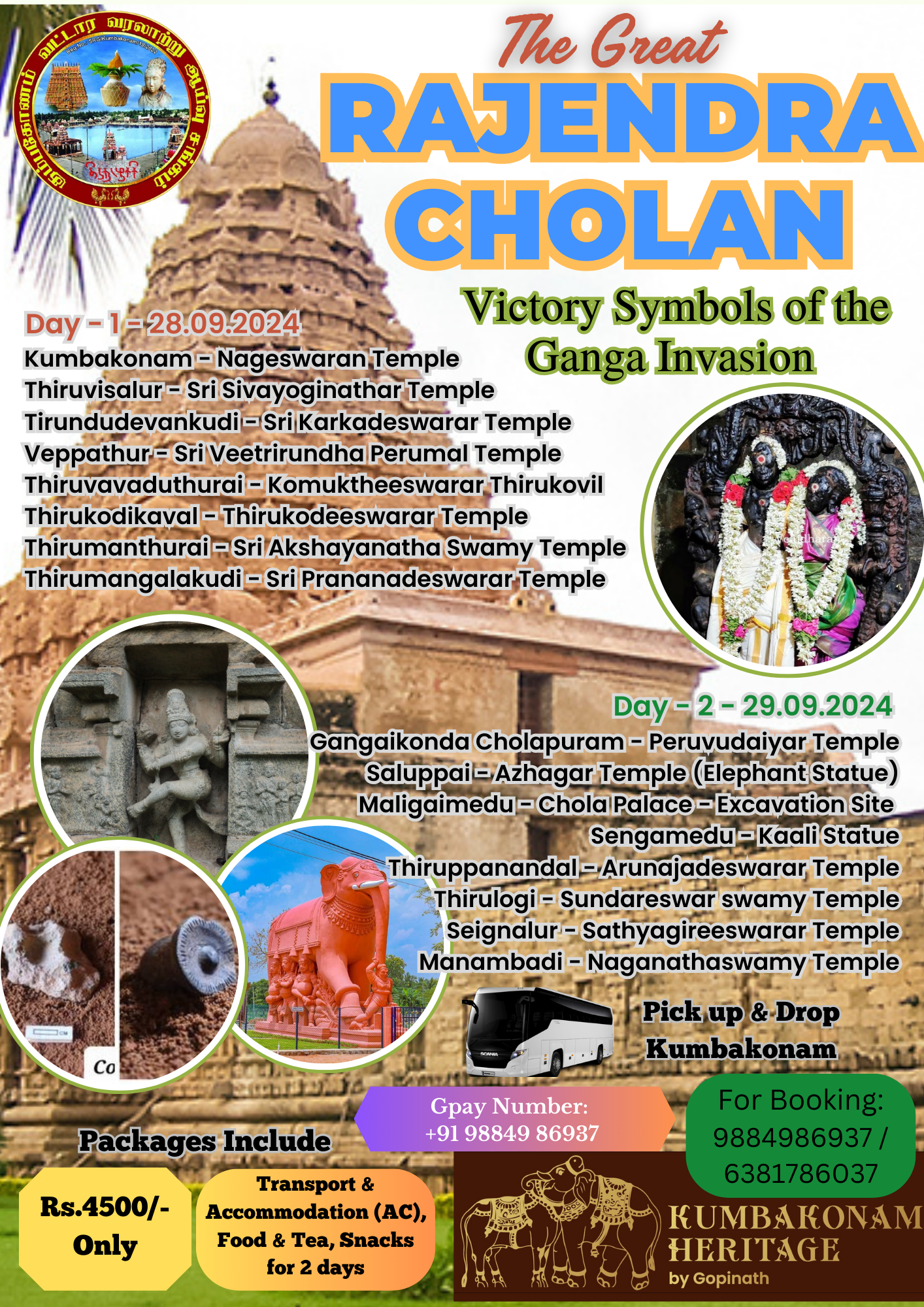 This 2 days (28.09.2024 & 29.09.2024) history walk is organized to view the victorious emblems of Chola Emperor Rajendra Chola’s Ganga invasion. We will inform everyone about the history of the hidden treasures located in the temples explored during our trip.