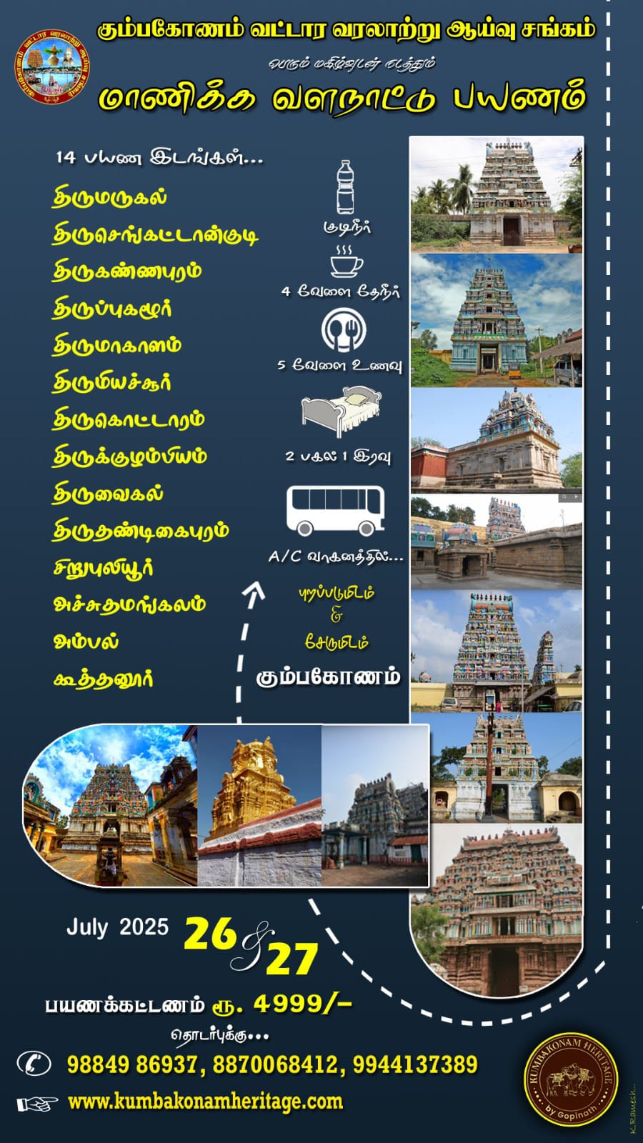The purpose of this two days (26-07-2025 & 27-07-2025) heritage trail speak the chronical places to the most important valanadu in to the chola dynasty.